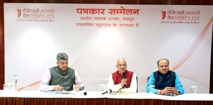 इस संबंध में रायपुर में आयोजित पत्रकार सम्मेलन में टीजेएसबी सहकारी बैंक लिमिटेड के अध्यक्ष श्री शरद गांगल, उपाध्यक्ष श्री वैभव सिंगवी तथा व्यवस्थापकीय संचालक एवं मुख्य कार्यकारी अधिकारी श्री निखिल आरेकर ने बैंक की विस्तार योजनाओं और रायपुर शाखा के शुभारंभ के बारे में जानकारी दी।