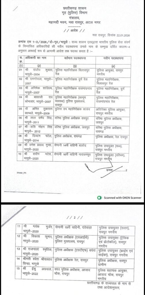BIG BREAKING:संजीव शुक्ला बने रायपुर के पहले कमिश्नर,एक दर्जन से ज्यादा आईपीएस अधिकारियों का तबादला