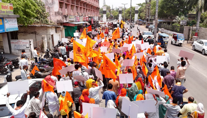 रायपुर, छत्तीसगढ़. रायपुर में “गो सम्मान आह्वान अभियान” के अंतर्गत विशाल संत समाज, गो सेवकों एवं समाज प्रमुखों द्वारा गो माँ और नंदी बाबा को साथ लेकर एक भव्य एवं शांतिपूर्ण भजन-कीर्तन प्रार्थना यात्रा का आयोजन किया गया। यह यात्रा माँ महामाया मंदिर प्रांगण से प्रारंभ हुई, जहाँ सभी श्रद्धालुओं एवं संत-महात्माओं ने माँ का आशीर्वाद प्राप्त कर प्रार्थना पत्र के साथ लगभग 21,200 व्यक्तियों द्वारा संकल्पित पत्रकों को लाल वस्त्र में सिर पर धारण कर नंगे पाँव पैदल चलते हुए अभियान का शुभारंभ किया। गो सम्मान यात्रा में भजन-कीर्तन करते हुए बड़ी संख्या में श्रद्धालु शामिल हुए। इस आयोजन का मुख्य उद्देश्य देशभर की तहसीलों में आयोजित ज्ञापन कार्यक्रम की विस्तृत जानकारी जनमानस तक पहुँचाना रहा।