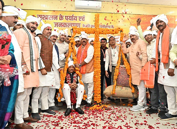 - मुख्यमंत्री को धान से तौलकर प्रदेश के अन्नदाताओं ने जताया आभार